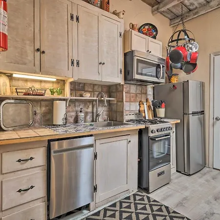 Guests can dine in a fully equipped kitchen, as well as an outdoor dining area, provided at this accommodation. There is also a fridge, oven, and a kitchenware to prepare your own meal. Root 66 Food Truck serving food and drinks is 950 feet away. Santa Fe Municipal airport is located 13 miles from the villa.